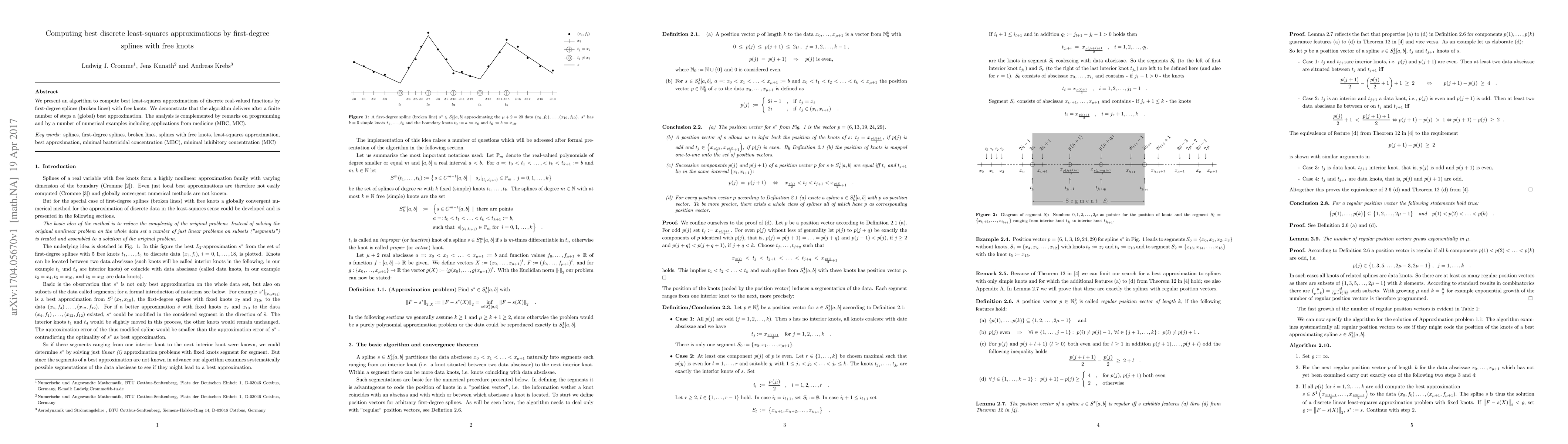 This paper introduces an algorithm for computing the best discrete least-squares approximations using first-degree splines with free knots. The algorithm guarantees a global best approximation after a finite number of steps, supported by programming remarks and numerical examples from medical applications.