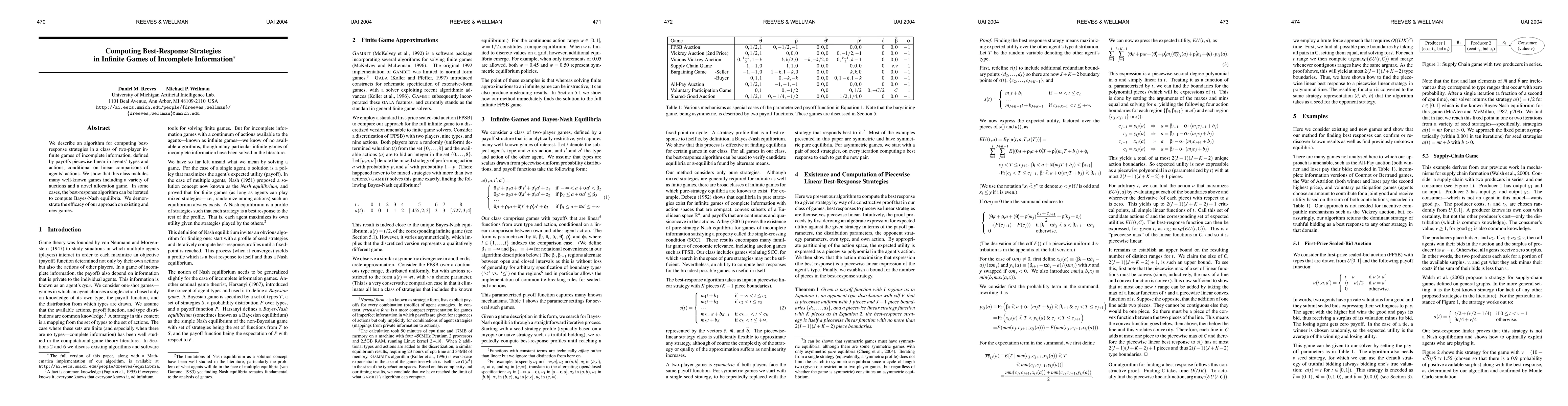 This paper presents an algorithm for determining best response strategies in infinite two-player games with incomplete information, applicable to various auction and allocation games. The algorithm can also iteratively compute Bayes-Nash equilibria, demonstrating efficiency across different game scenarios.