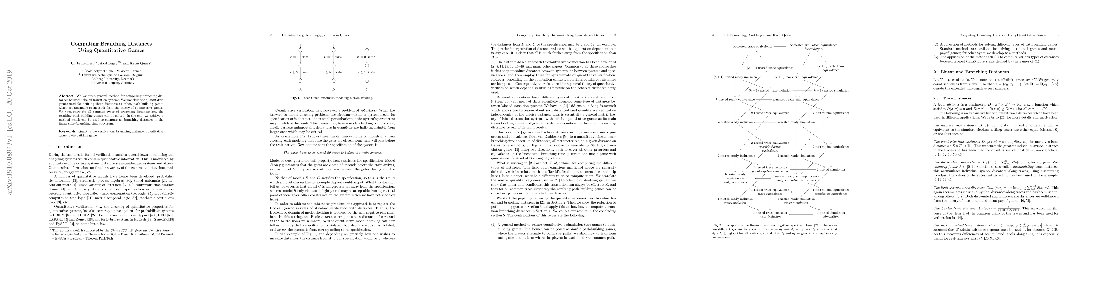 This paper presents a method for computing branching distances between labeled transition systems by translating quantitative games into path-building games. It demonstrates how these games can be solved to determine all branching distances within the linear-time--branching-time spectrum.