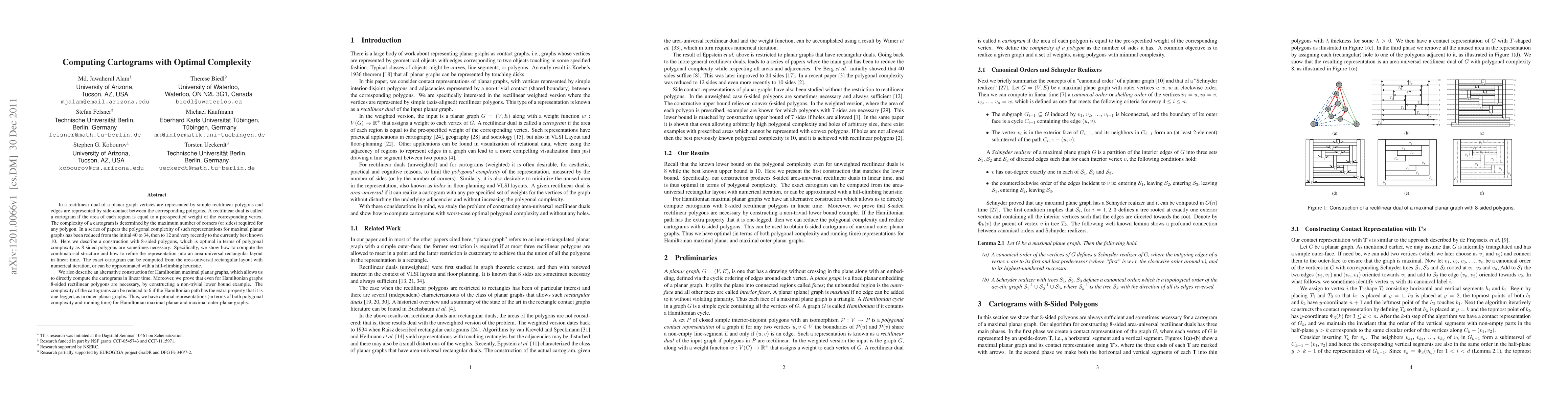 This paper presents an optimal construction for computing cartograms with 8-sided polygons, achieving the lowest known polygonal complexity of 10 for general maximal planar graphs. It describes linear-time algorithms for both exact and approximate computations, and proves that 8-sided polygons are sometimes necessary. Additionally, it provides an alternative linear-time method for Hamiltonian maximal planar graphs, reducing complexity to 6 under specific conditions.