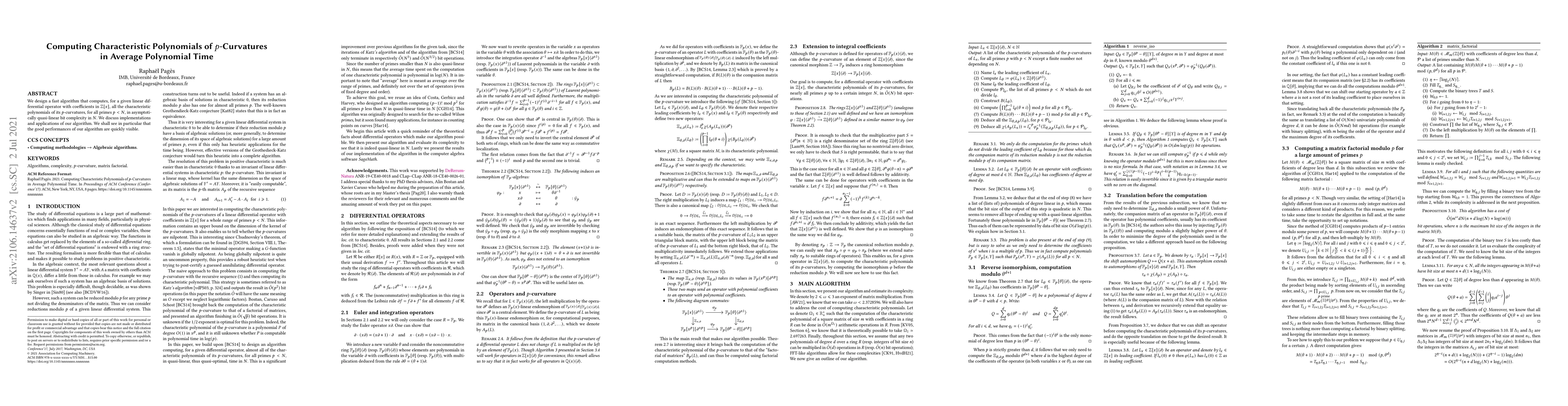 Researchers have developed an algorithm to calculate characteristic polynomials of p-curvatures for a given linear differential operator in average polynomial time, with asymptotically quasi-linear bit complexity.