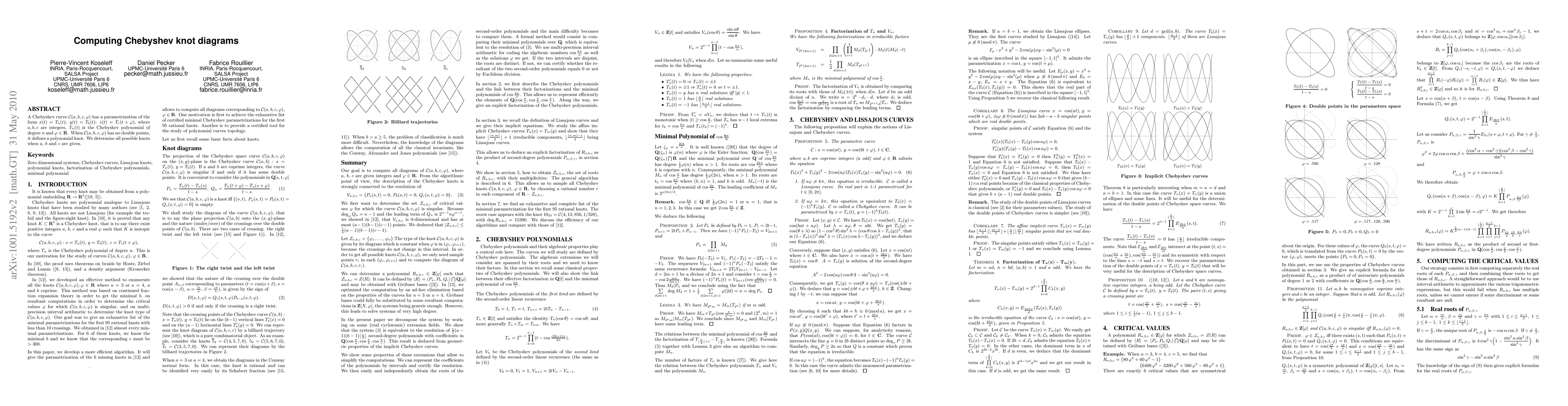 This work simplifies the study of double points in Chebyshev curves compared to Lissajous curves, providing a systematic method to compute knot diagrams for Chebyshev knots, which is valuable in knot theory and topology.