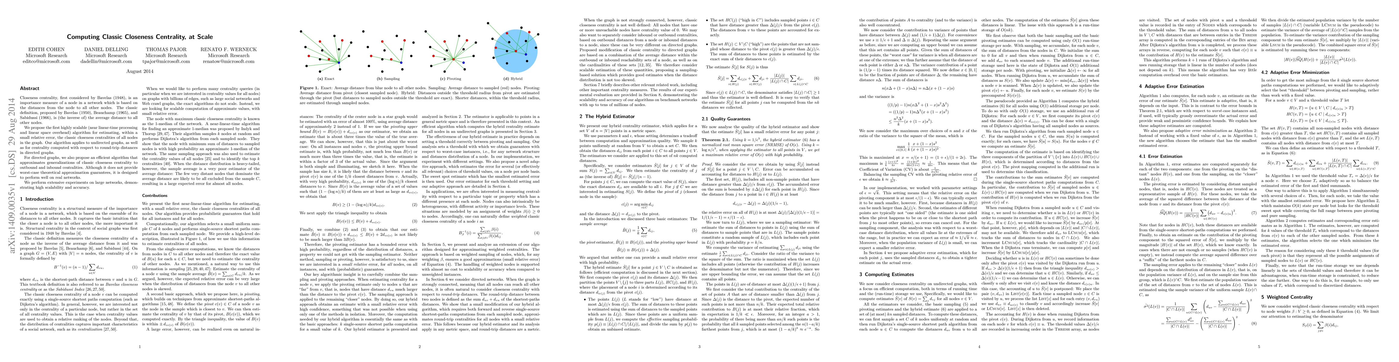 This paper presents scalable algorithms for estimating classic closeness centrality in large undirected graphs and directed graphs, achieving near linear-time processing and linear space overhead. Experiments on large networks show high scalability and accuracy.