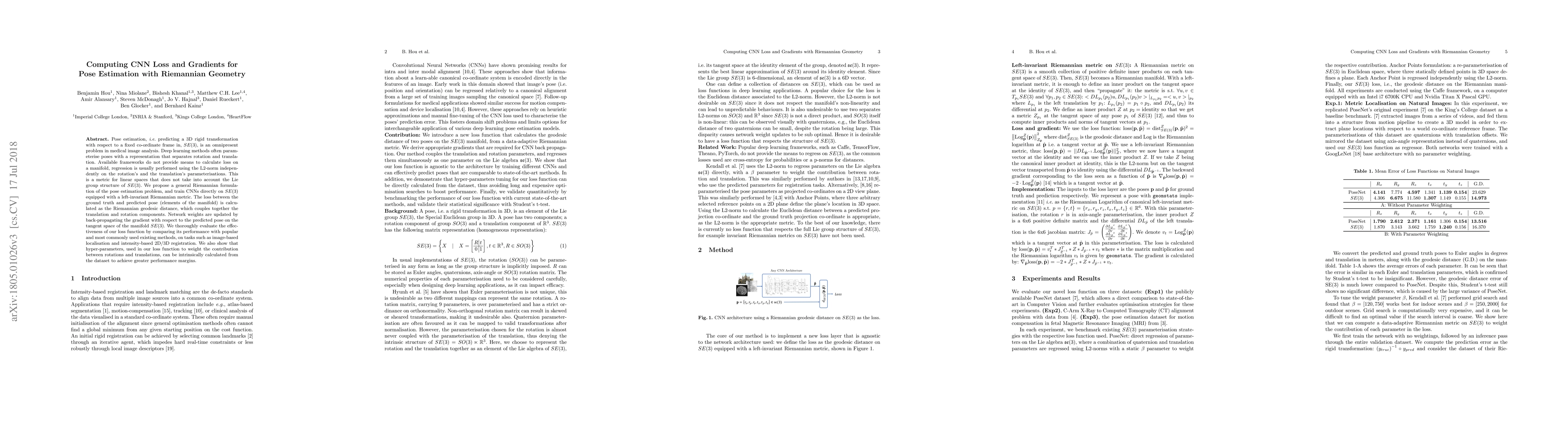 This paper proposes a novel Riemannian formulation for CNN-based pose estimation in medical image analysis, directly computing loss and gradients using the Riemannian geodesic distance on the SE(3) manifold. The method outperforms traditional L2-norm regression by considering the Lie group structure of SE(3) and achieves better performance in tasks like image registration and localization.