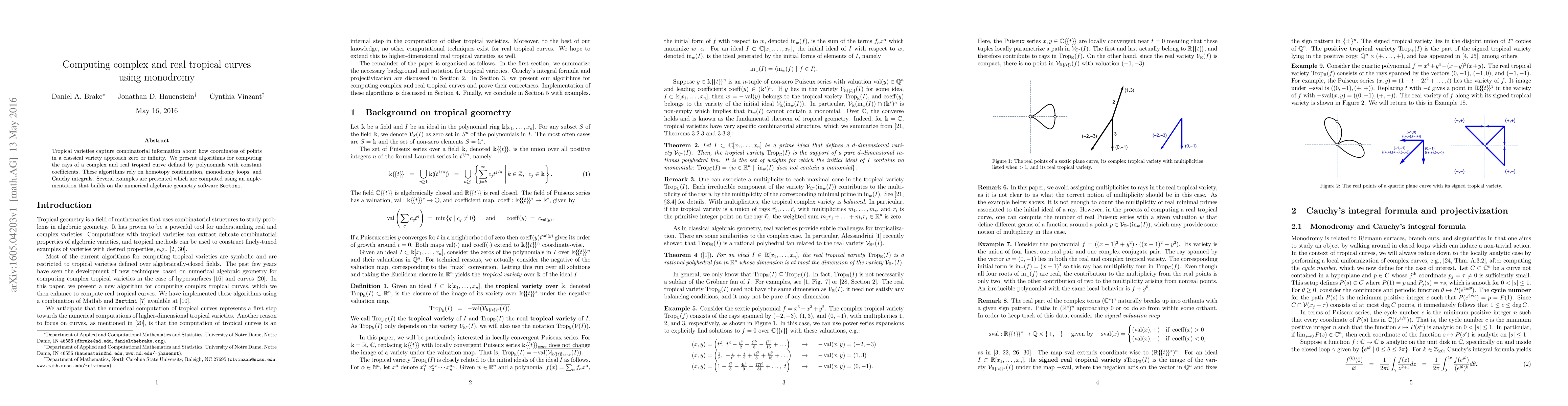 Tropical varieties capture combinatorial information about how coordinates of points in a classical variety approach zero or infinity. We present algorithms for computing the rays of a complex and real tropical curve defined by polynomials with constant coefficients. These algorithms rely on homotopy continuation, monodromy loops, and Cauchy integrals. Several examples are presented which are computed using an implementation that builds on the numerical algebraic geometry software Bertini.