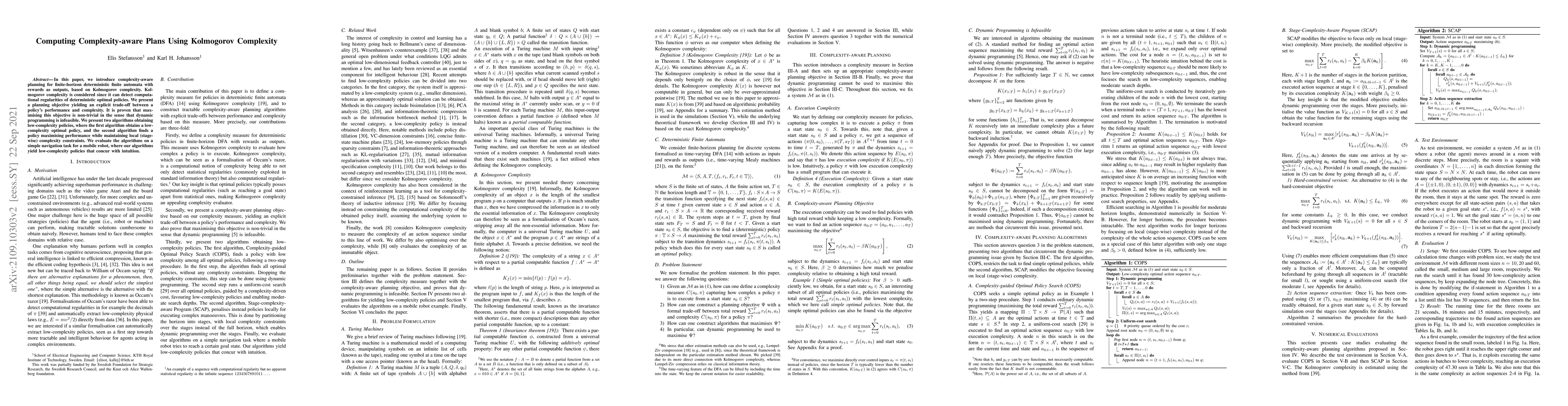 Researchers developed a planning approach using Kolmogorov complexity to balance policy performance with computational complexity, finding low-complexity policies that optimize navigation for mobile robots.