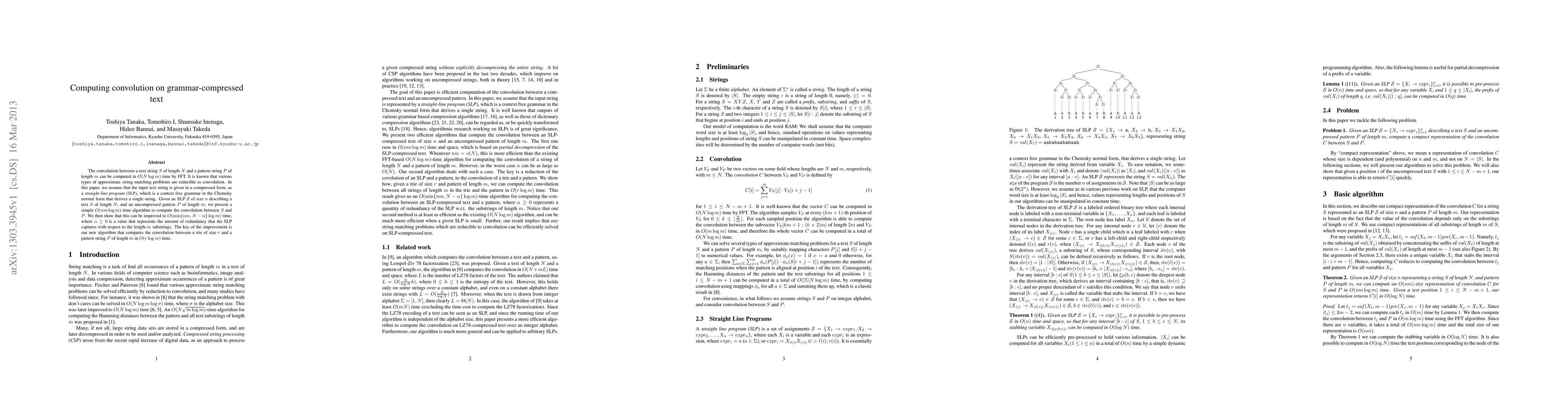 Researchers developed an algorithm to compute convolution on grammar-compressed text with improved time complexity, reducing computation from O(nm log m) to O(min{nm, N-\u03b1} log m), where α represents the amount of redundancy captured by the compression.
