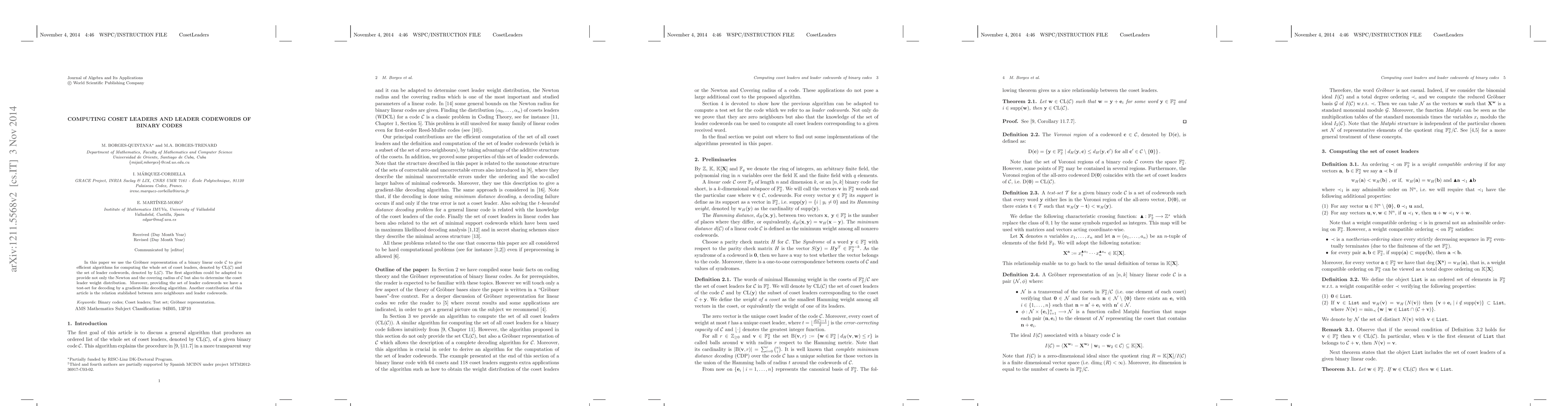 This paper presents efficient algorithms for computing coset leaders and leader codewords of binary codes using Gr"obner representation, enabling decoding and weight distribution analysis.