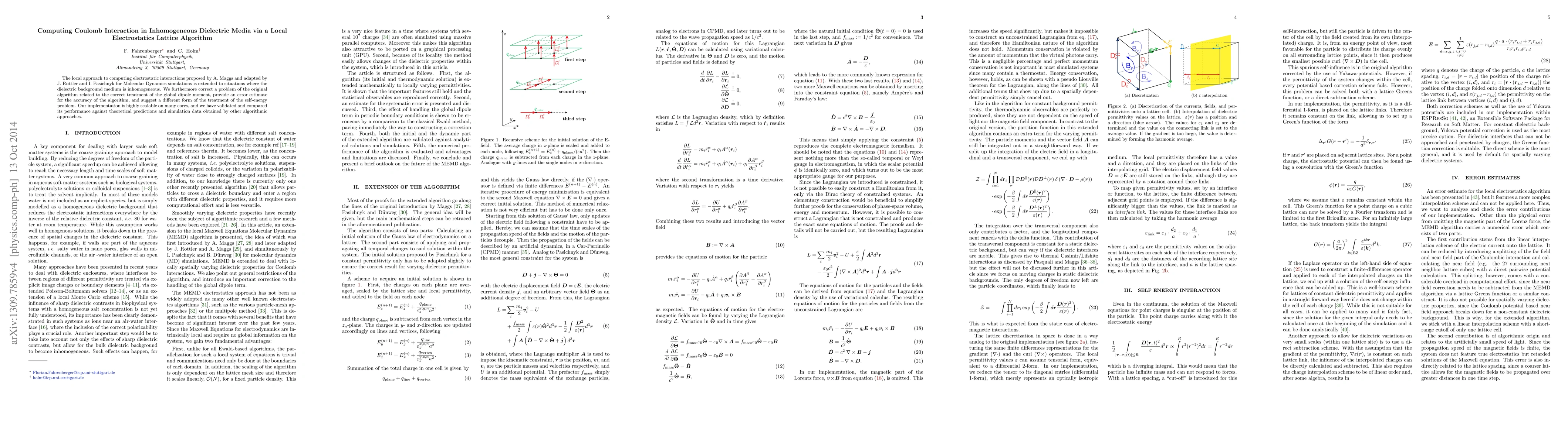 This paper extends a local electrostatics algorithm to compute Coulomb interactions in inhomogeneous dielectric media, corrects the original algorithm's global dipole moment issue, and provides an error estimate for its accuracy. The scalable implementation is validated and compared to theoretical predictions and other simulation methods.