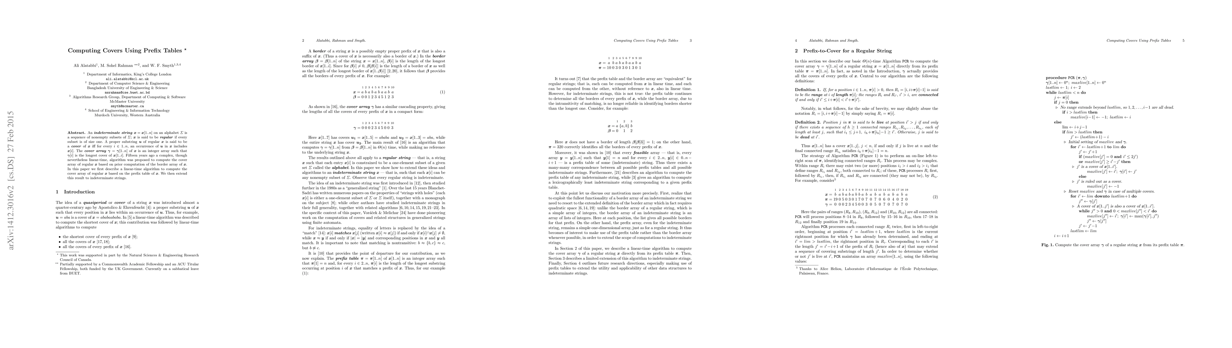 Researchers develop a linear-time algorithm to compute the cover array of regular strings based on prefix tables, extending it to indeterminate strings for efficient computation.