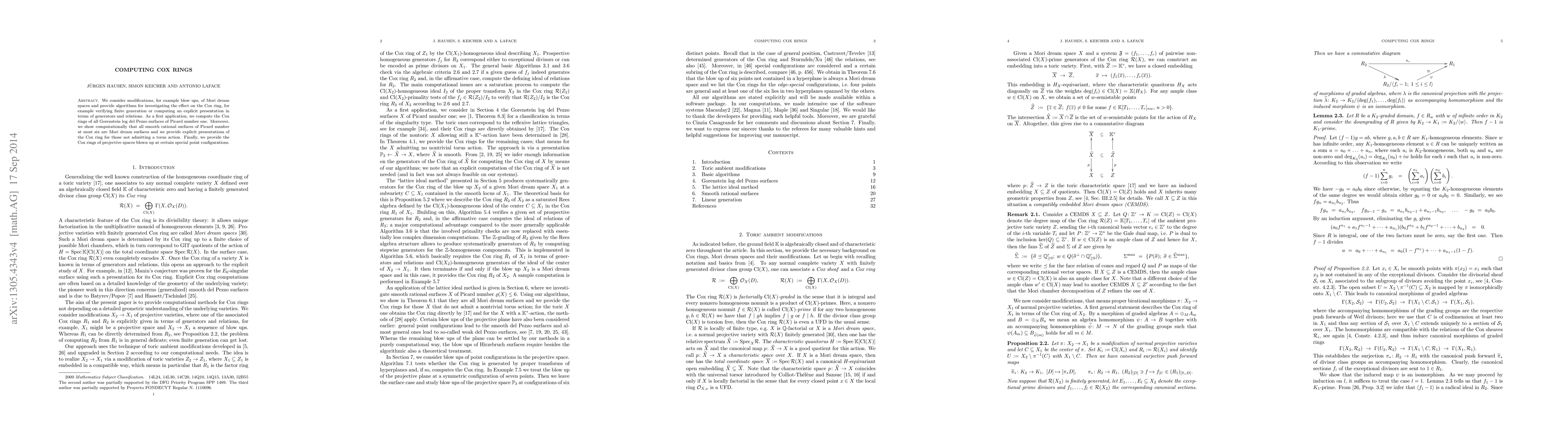 This paper presents algorithms for examining modifications of Mori dream spaces, focusing on their Cox rings, including testing finite generation and computing explicit presentations. It computes Cox rings for Gorenstein log del Pezzo surfaces and smooth rational surfaces, and provides presentations for those without torus actions.