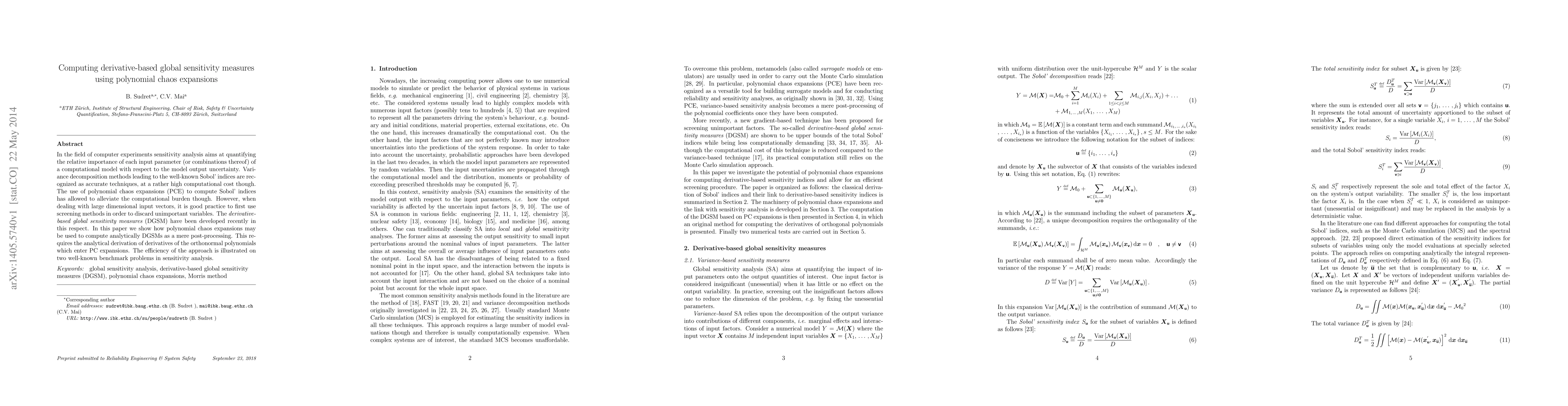 This paper presents a method for computing derivative-based global sensitivity measures using polynomial chaos expansions, allowing for efficient post-processing to derive these measures without significant additional computational costs. The approach is demonstrated on two benchmark problems to illustrate its effectiveness.