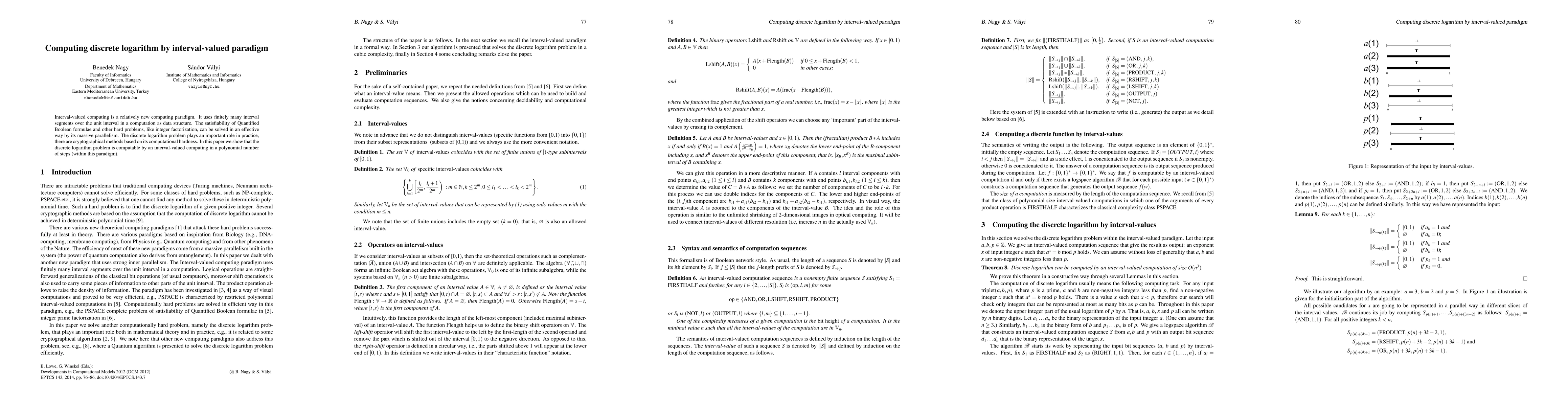 This paper demonstrates that the discrete logarithm problem, fundamental to cryptographic methods, can be solved using interval-valued computing, achieving polynomial-time computation within this new computing paradigm. The approach leverages the massive parallelism of interval-valued computations to effectively tackle the problem.