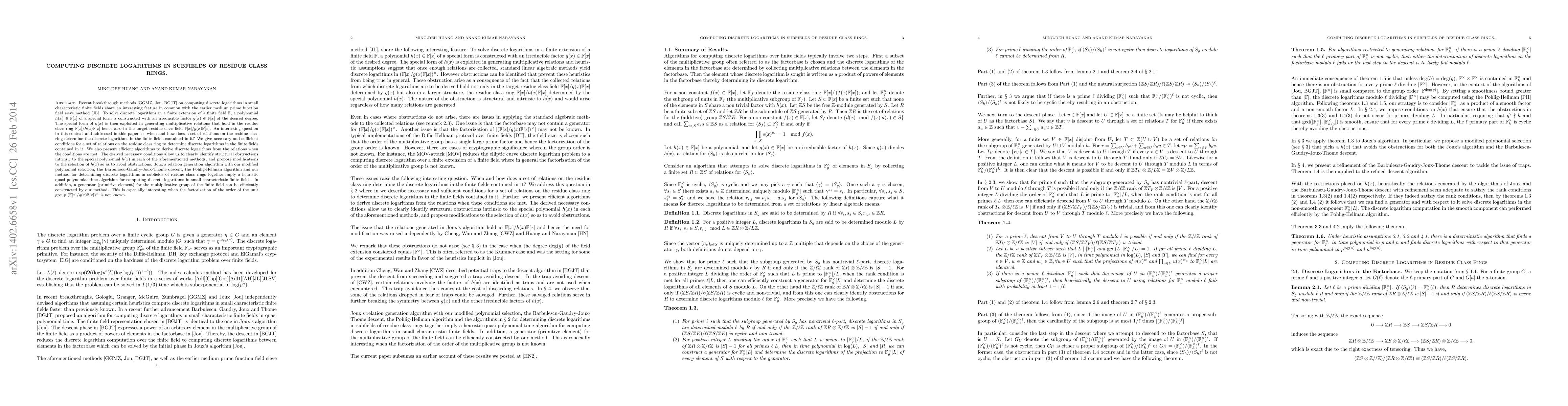 This paper investigates how discrete logarithms in finite fields can be computed using relations from residue class rings. It provides necessary and sufficient conditions for these relations to determine discrete logarithms and presents efficient algorithms for their derivation, along with modifications to polynomials to avoid structural obstructions.