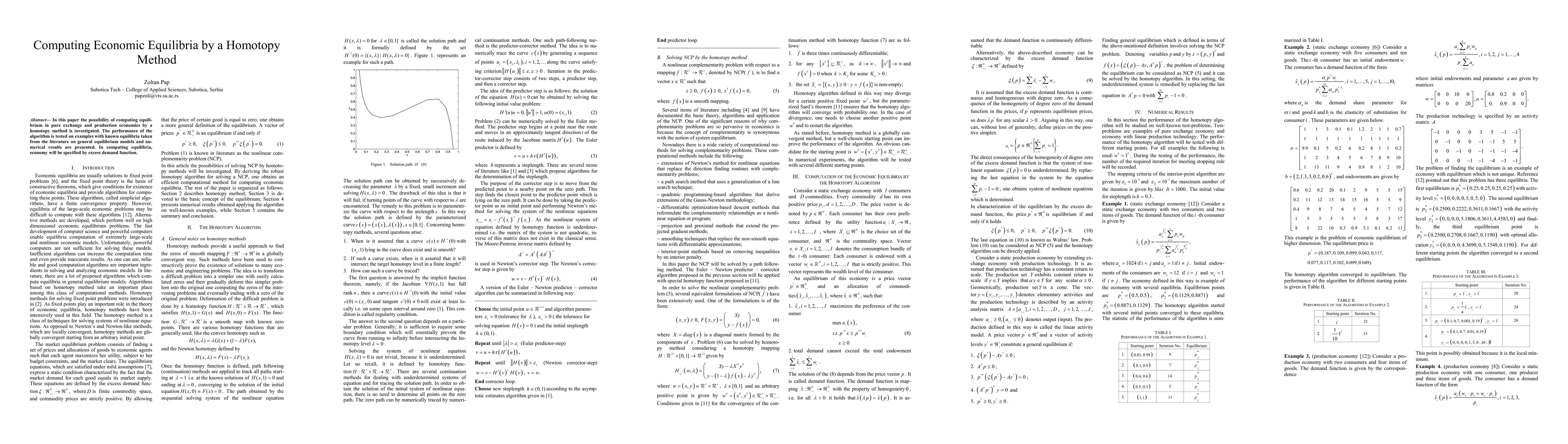 This paper explores the use of a homotopy method to compute economic equilibria in both pure exchange and production economies, demonstrating its performance through examples with known equilibria and presenting numerical results. The method specifies the economy using an excess demand function.