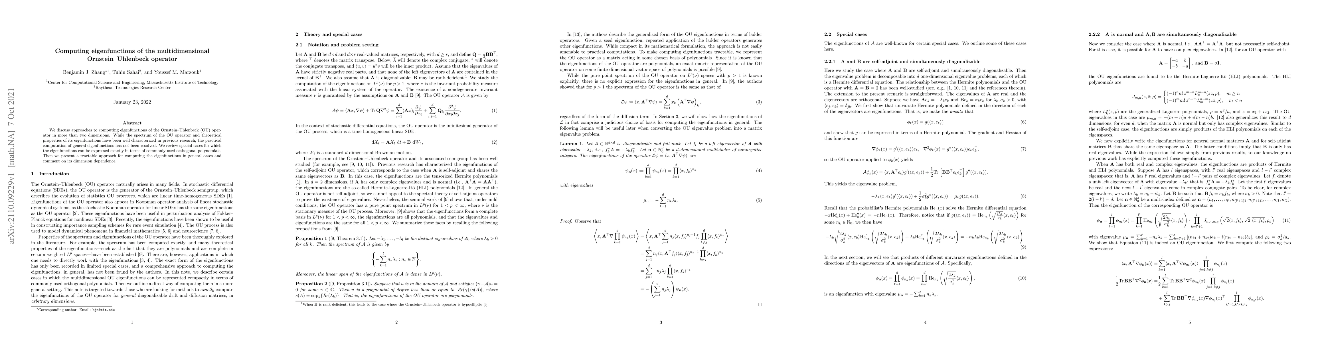 This paper explores methods for computing eigenfunctions of the multidimensional Ornstein-Uhlenbeck operator, reviewing exact solutions in special cases and presenting a general approach for practical computation, with analysis of its dimensional dependence.