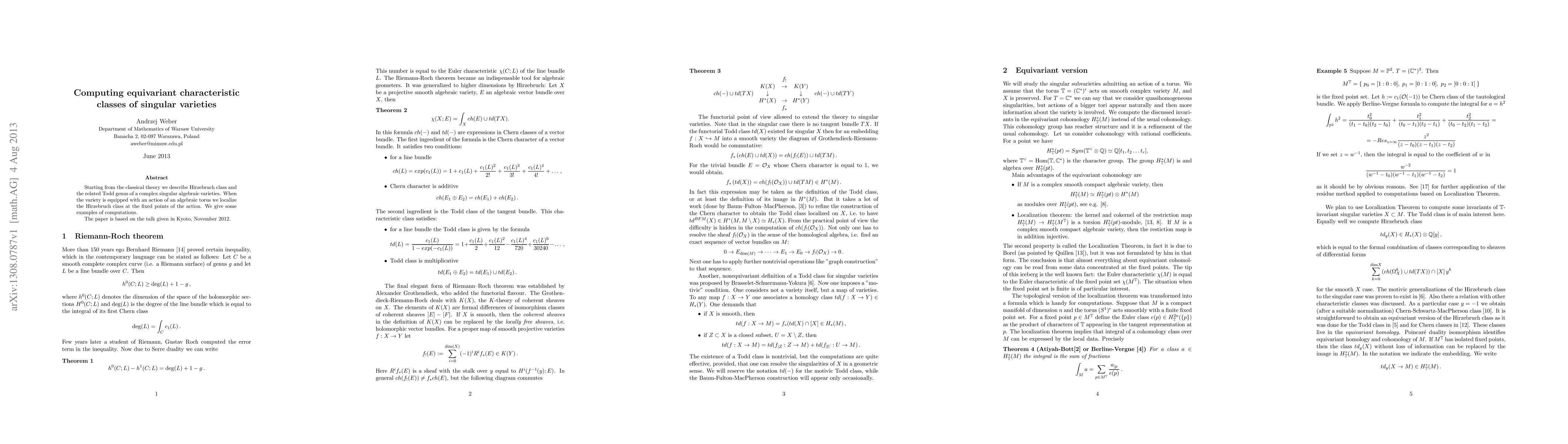 This paper extends classical theories to compute equivariant characteristic classes for singular algebraic varieties, focusing on the Hirzebruch class and Todd genus. It localizes these classes at fixed points of an algebraic torus action and includes examples of computations.