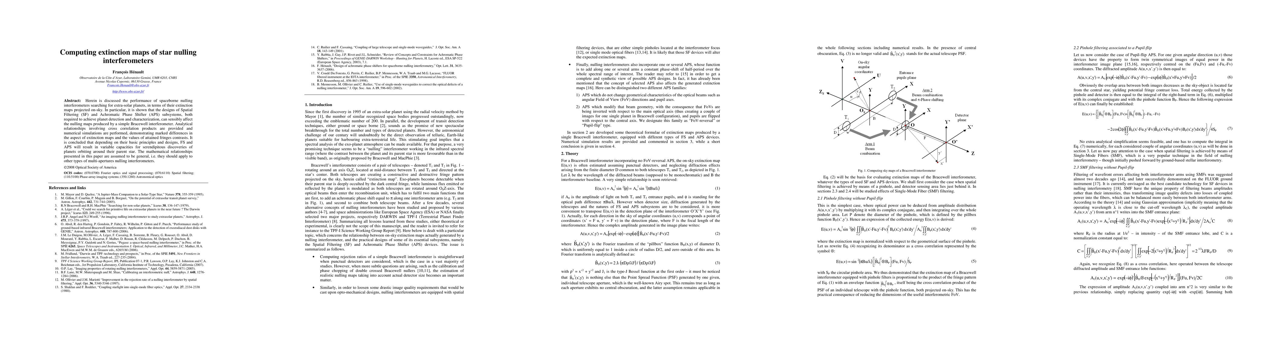 This paper evaluates the performance of spaceborne nulling interferometers in detecting extra-solar planets, focusing on how Spatial Filtering and Achromatic Phase Shifter designs impact extinction maps. Analytical and numerical results show significant differences in fringe contrast and extinction map appearance, indicating varied capacities for planet discovery based on subsystem design.