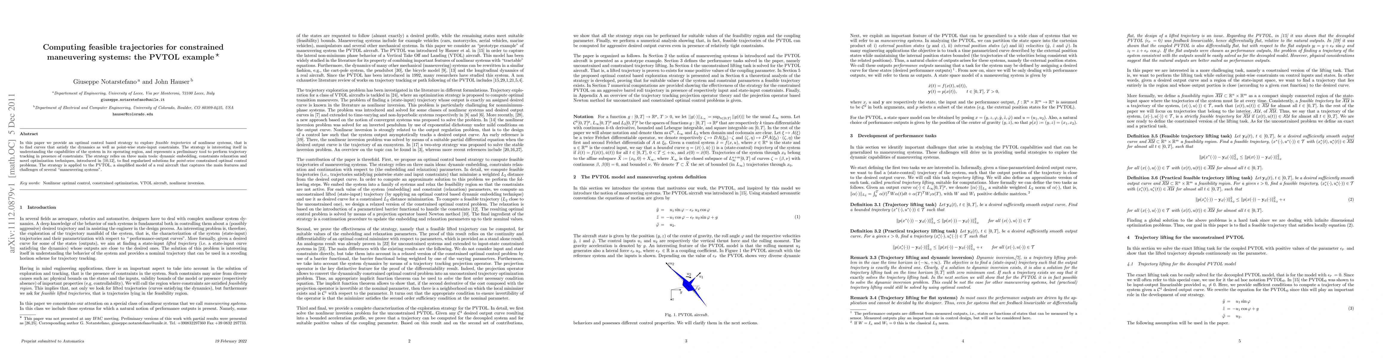 In this paper we provide an optimal control based strategy to explore feasible trajectories of nonlinear systems, that is to find curves that satisfy the dynamics as well as point-wise state-input constraints. The strategy is interesting itself in understanding the capabilities of the system in its operating region, and represents a preliminary tool to perform trajectory tracking in presence of constraints. The strategy relies on three main tools: dynamic embedding, constraints relaxation and novel optimization techniques, introduced in [10,12], to find regularized solutions for point-wise constrained optimal control problems. The strategy is applied to the PVTOL, a simplified model of a real aircraft that captures the main features and challenges of several "maneuvering systems".