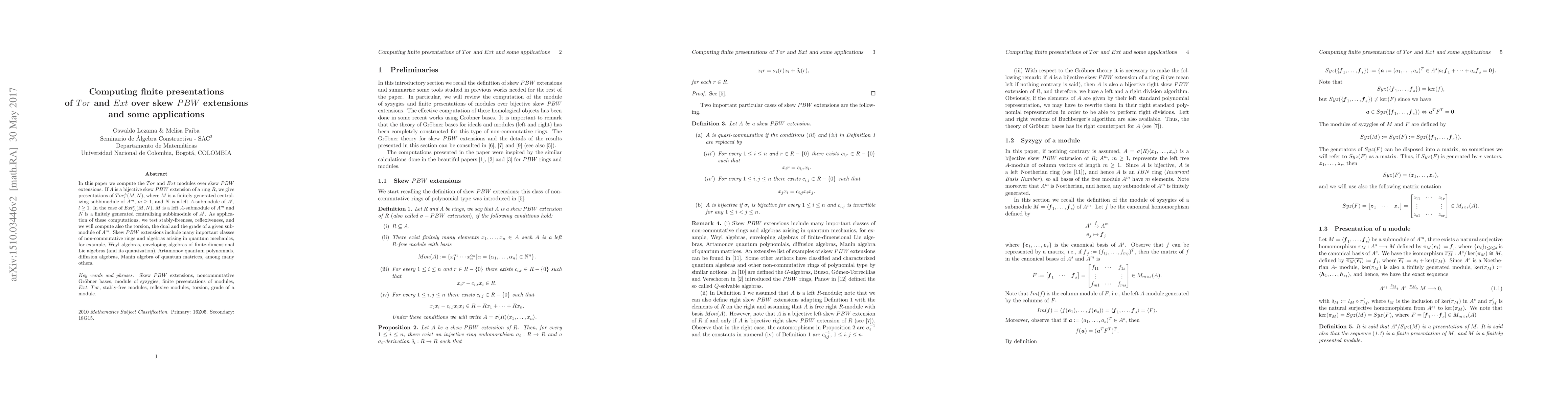 This paper computes $Tor$ and $Ext$ modules over skew PBW extensions, providing presentations for these modules. It also explores applications including testing stably-freeness, reflexiveness, and computing torsion, dual, and grade for given submodules.