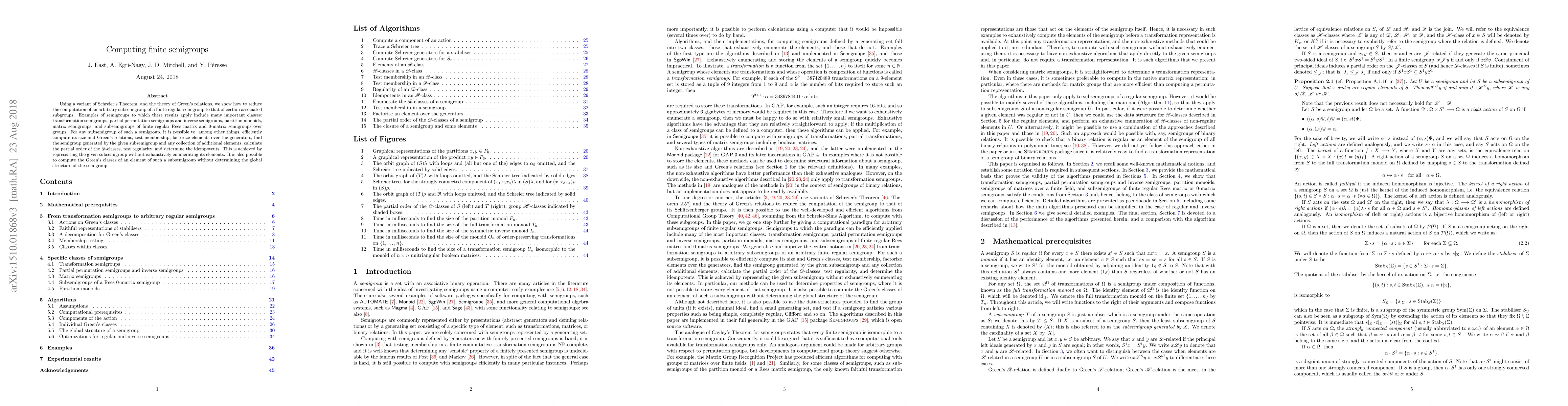 The paper presents a novel approach to represent and compute subsemigroups of finite regular semigroups using Green's relations and Schreier's Theorem, enabling efficient computation of various structural properties.