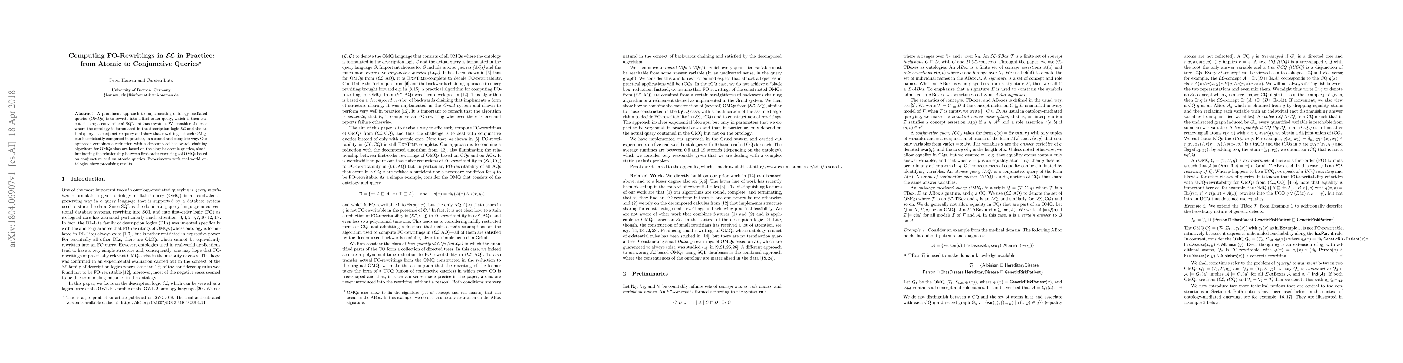 This paper presents an efficient method for computing first-order rewritings of ontology-mediated queries in EL description logic, focusing on conjunctive queries. It combines reduction techniques with a decomposed backwards chaining algorithm, demonstrating practical soundness and completeness, and showing promising results in real-world ontology experiments.