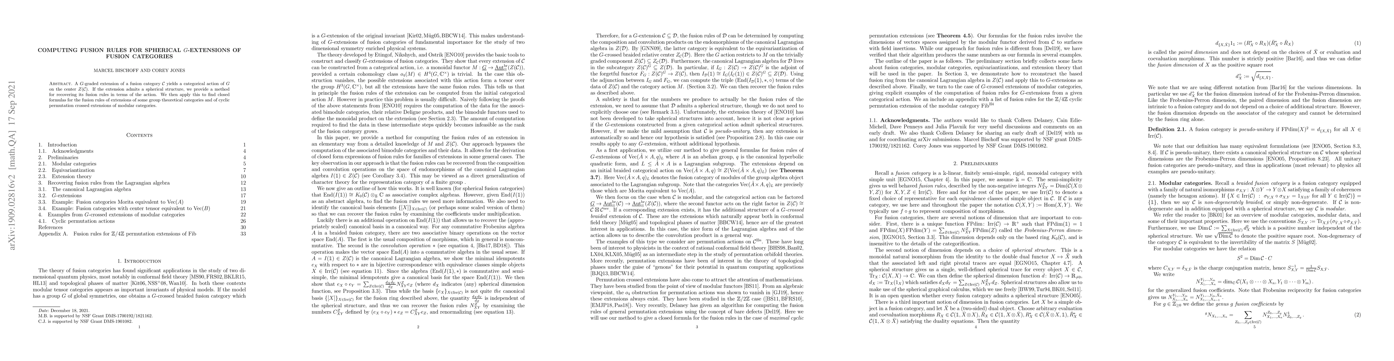 A $G$-graded extension of a fusion category $\mathcal{C}$ yields a categorical action of $G$ on the center $Z(\mathcal C)$. If the extension admits a spherical structure, we provide a method for recovering its fusion rules in terms of the action. We then apply this to find closed formulas for the fusion rules of extensions of some group theoretical categories and of cyclic permutation crossed extensions of modular categories.