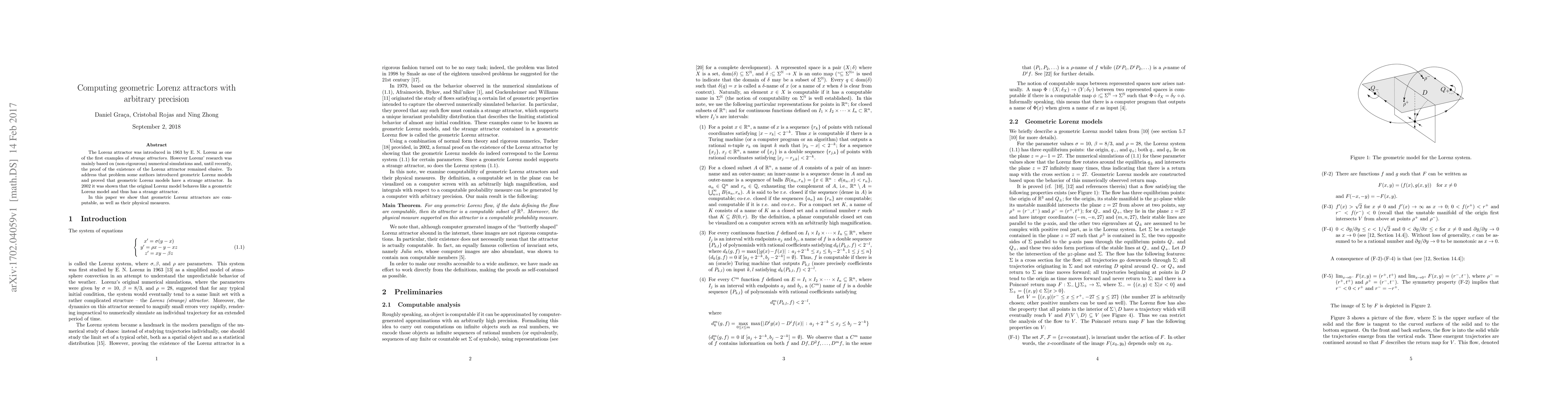 This paper demonstrates that geometric Lorenz attractors, which are rigorously proven to exhibit strange attractors, can be computed with arbitrary precision and their physical measures can be determined. This resolves longstanding uncertainties surrounding the existence and nature of the original Lorenz attractor.