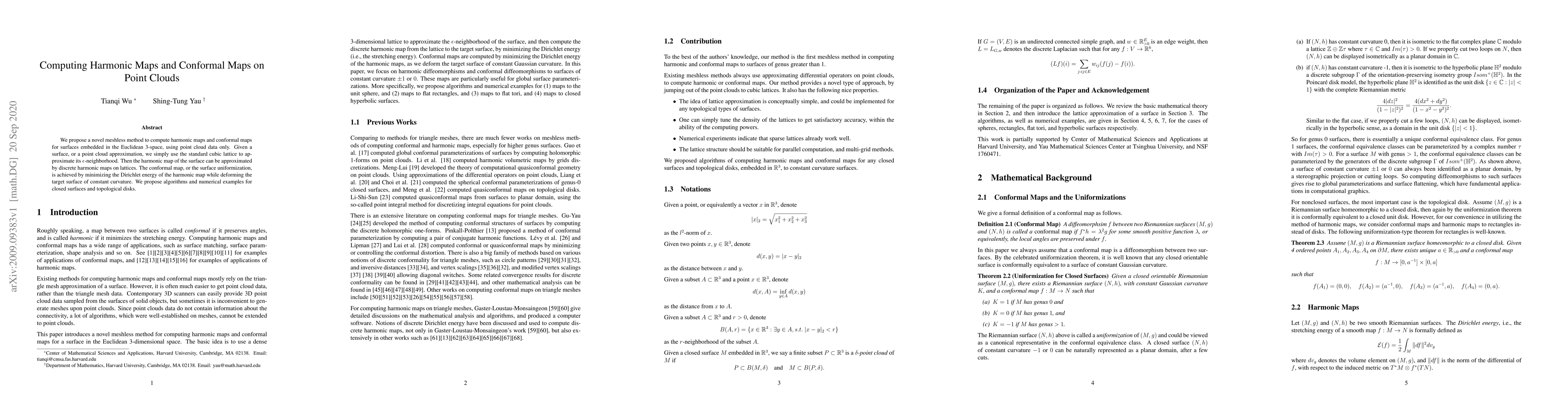This paper introduces a meshless method for computing harmonic and conformal maps using point cloud data, approximating surfaces with a cubic lattice and minimizing Dirichlet energy to achieve surface uniformization. The method is demonstrated through algorithms and examples for closed surfaces and topological disks.