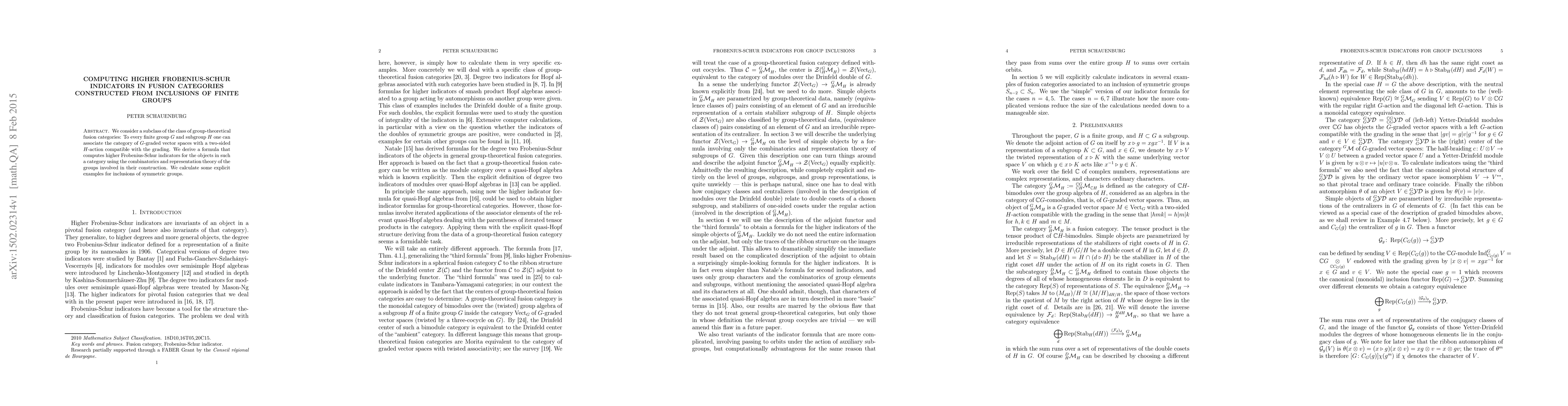 This paper develops a formula to compute higher Frobenius-Schur indicators for fusion categories derived from $G$-graded vector spaces with $H$-actions, focusing on inclusions of finite groups. Explicit examples for symmetric group inclusions are calculated to illustrate the method.