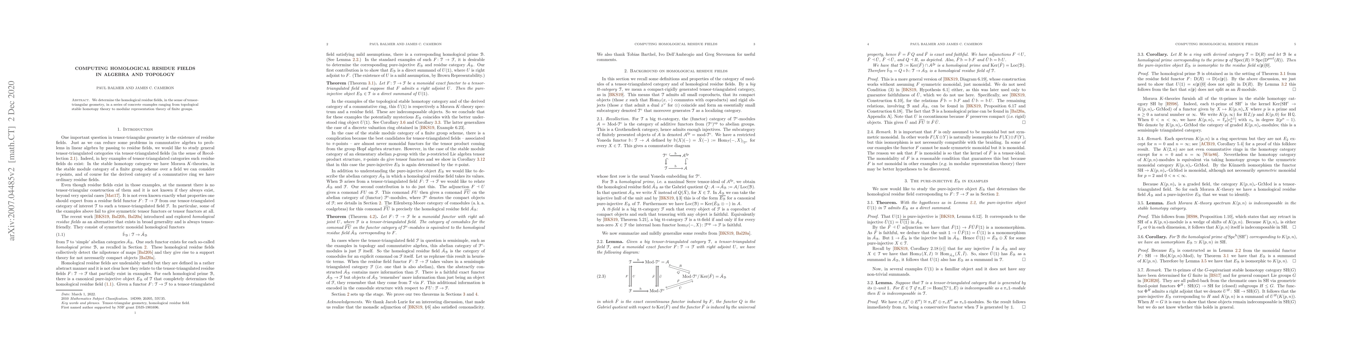 This paper determines homological residue fields within tensor-triangular geometry, applying this concept to examples from topological stable homotopy theory and modular representation theory of finite groups. The study aims to elucidate connections between algebraic and topological structures through homological residue fields.