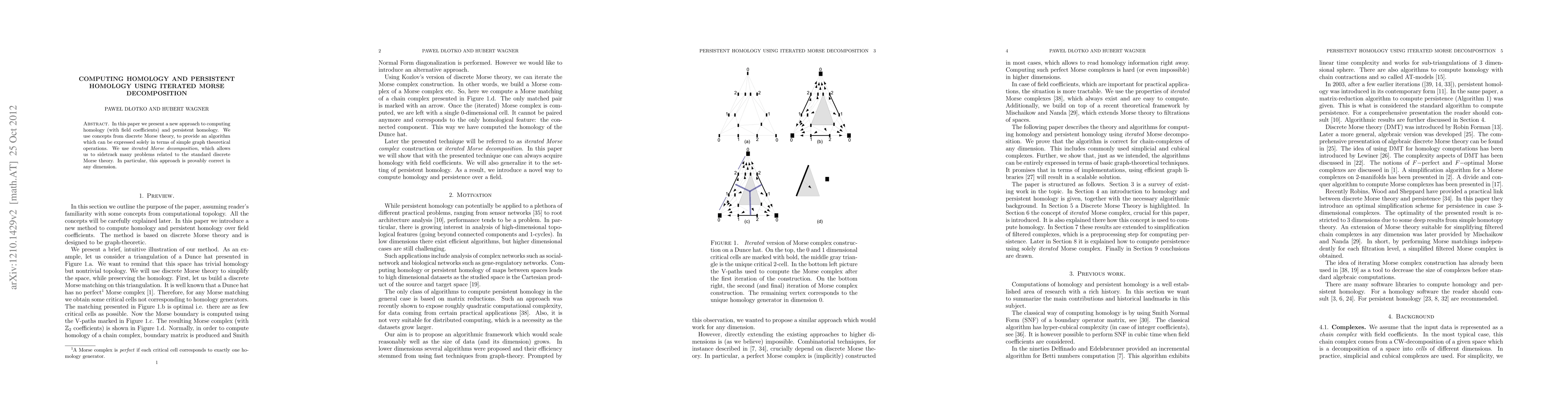 In this paper we present a new approach to computing homology (with field coefficients) and persistent homology. We use concepts from discrete Morse theory, to provide an algorithm which can be expressed solely in terms of simple graph theoretical operations. We use iterated Morse decomposition, which allows us to sidetrack many problems related to the standard discrete Morse theory. In particular, this approach is provably correct in any dimension.