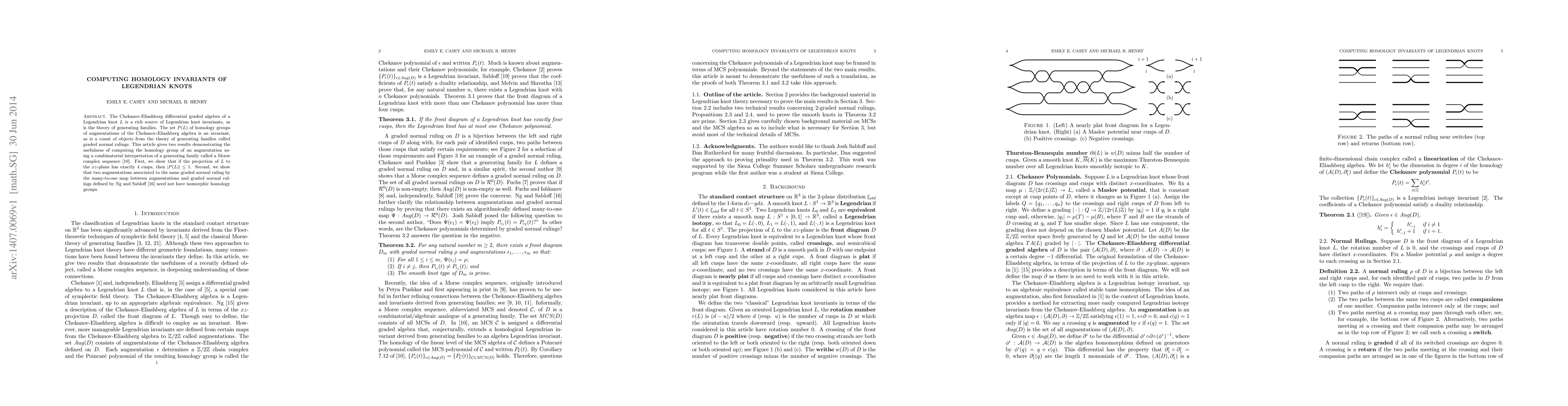 This paper explores the utility of homology invariants derived from the Chekanov-Eliashberg differential graded algebra for Legendrian knots, focusing on combinatorial interpretations via Morse complex sequences. It proves that Legendrian knots with exactly 4 cusps in the xz-plane have homology invariants of size ≤ 1 and demonstrates non-isomorphism between homology groups of augmentations linked to the same graded normal ruling.