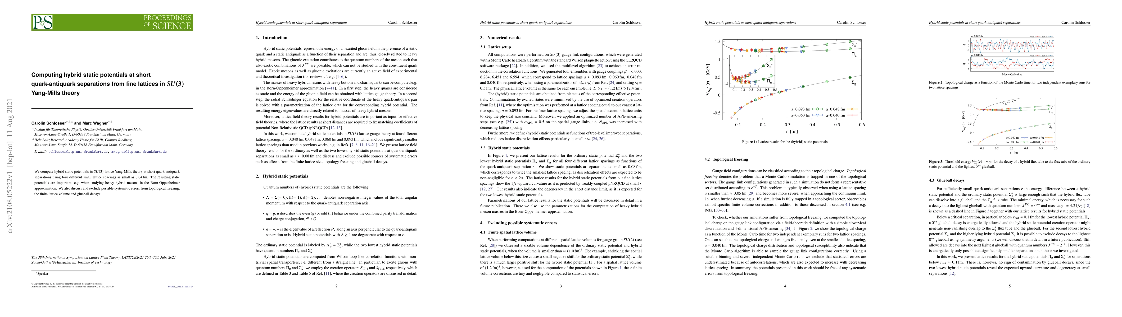 This paper computes hybrid static potentials in $SU(3)$ lattice Yang-Mills theory at short quark-antiquark separations using fine lattices, aiming to study heavy hybrid mesons. It addresses and excludes systematic errors from topological freezing, finite volume, and glueball decays.