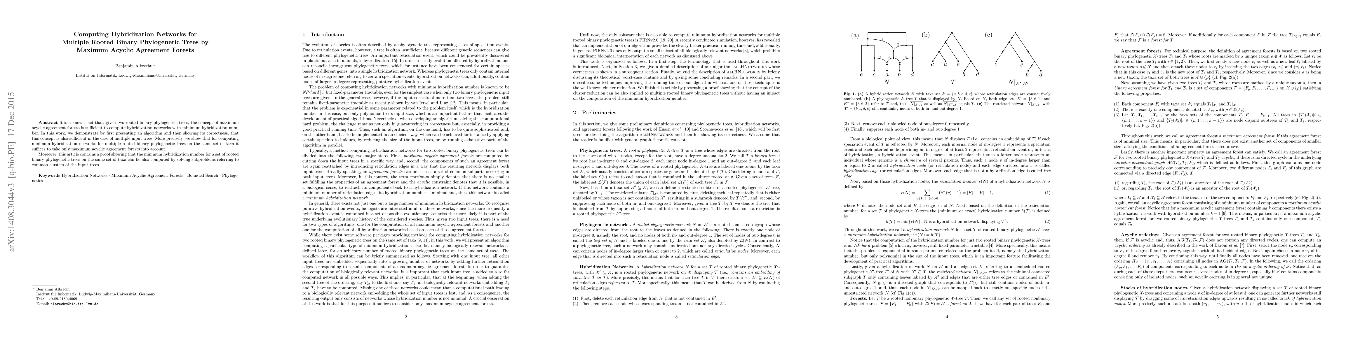This research develops an algorithm to compute hybridization networks for multiple rooted binary phylogenetic trees using maximum acyclic agreement forests, proving its correctness and showing that it suffices to solve subproblems referring to common clusters of the input trees to determine the minimum hybridization number.