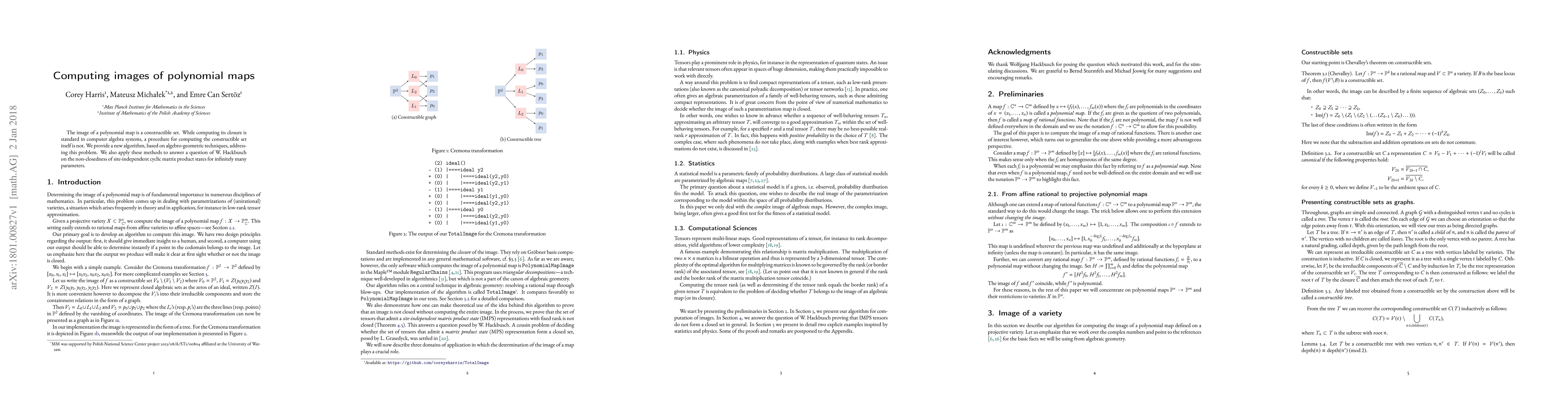 Researchers developed an algorithm to compute the constructible set of a polynomial map, addressing a long-standing problem in computer algebra systems. This breakthrough enables new applications, such as analyzing non-closed matrix product states for infinitely many parameters.