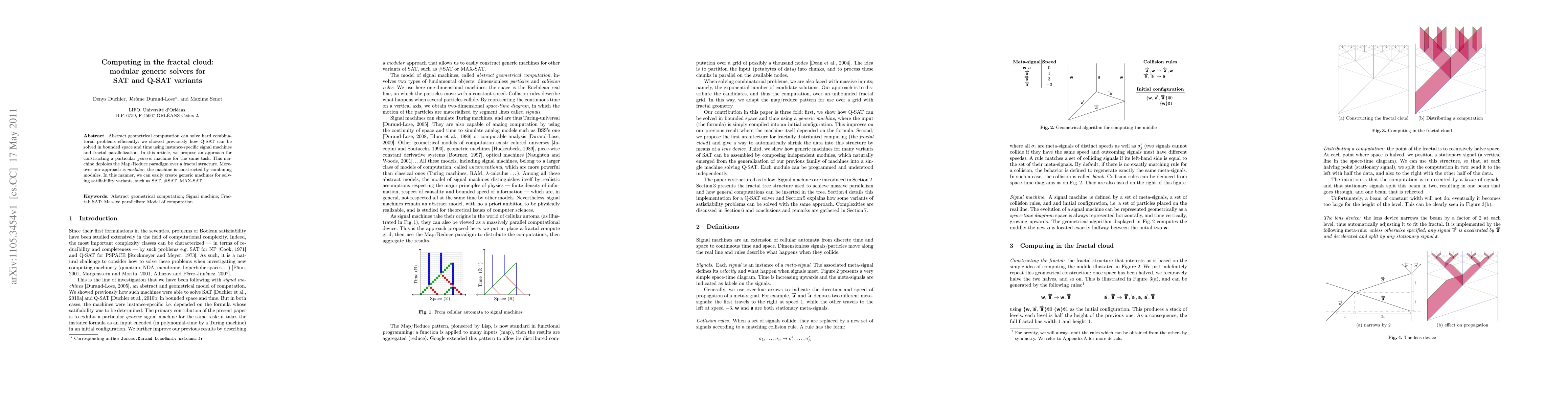 Abstract geometrical computation can solve hard combinatorial problems efficiently: we showed previously how Q-SAT can be solved in bounded space and time using instance-specific signal machines and fractal parallelization. In this article, we propose an approach for constructing a particular generic machine for the same task. This machine deploies the Map/Reduce paradigm over a fractal structure. Moreover our approach is modular: the machine is constructed by combining modules. In this manner, we can easily create generic machines for solving satifiability variants, such as SAT, #SAT, MAX-SAT.