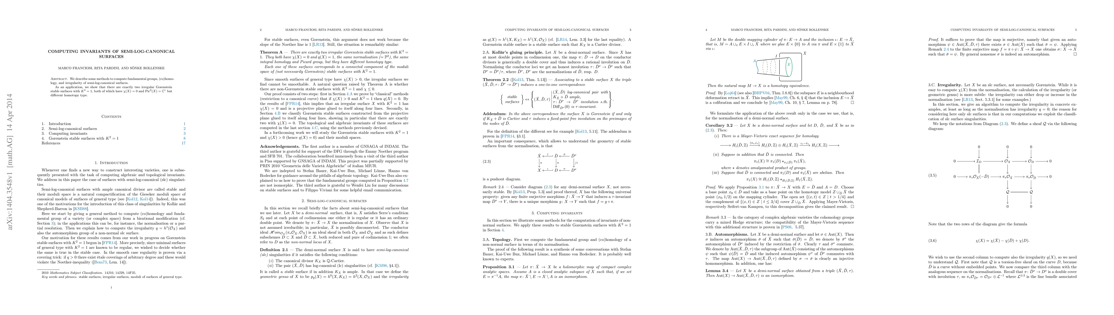 We describe some methods to compute fundamental groups, (co)homology, and irregularity of semi-log-canonical surfaces. As an application, we show that there are exactly two irregular Gorenstein stable surfaces with $K^2=1$, both of which have $\chi(X) = 0$ and $\mathrm{Pic}^0(X)=\mathbb{C}^*$ but different homotopy type.