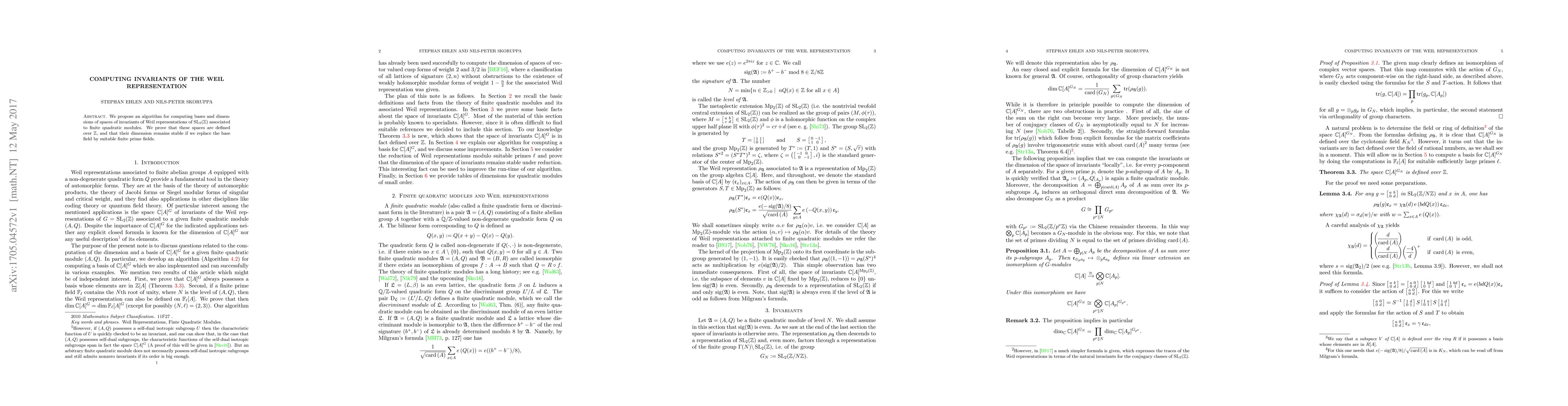 This paper proposes an algorithm to compute bases and dimensions of spaces of invariants for Weil representations of SL_2(Z) associated with finite quadratic modules, showing these spaces are defined over Z and dimension remains stable under suitable base field changes.