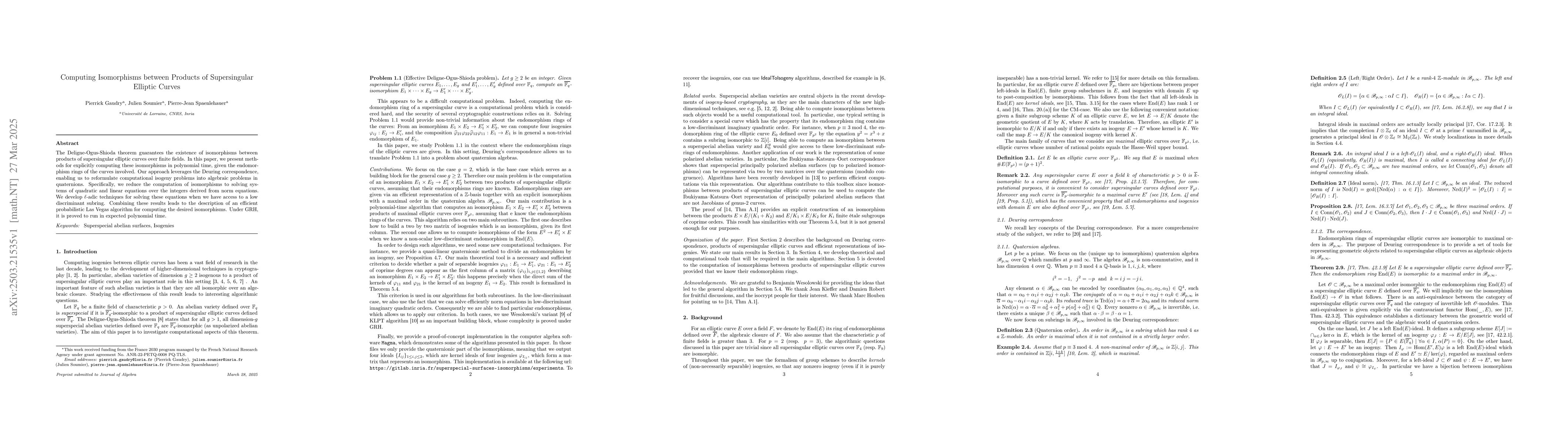 Researchers develop an algorithm to compute isomorphisms between products of supersingular elliptic curves, solving a long-standing problem in number theory, using the Deuring correspondence and $ ho$-adic techniques.
