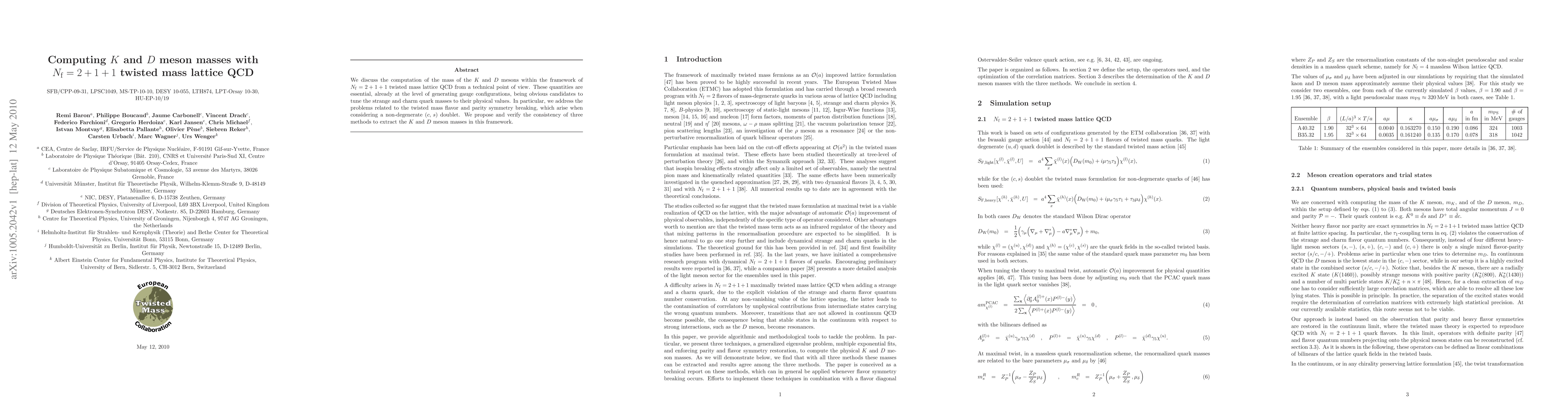 This paper computes K and D meson masses using N_f = 2+1+1 twisted mass lattice QCD, focusing on tuning strange and charm quark masses. It addresses symmetry breaking issues and proposes three methods to extract the meson masses, verifying their consistency.
