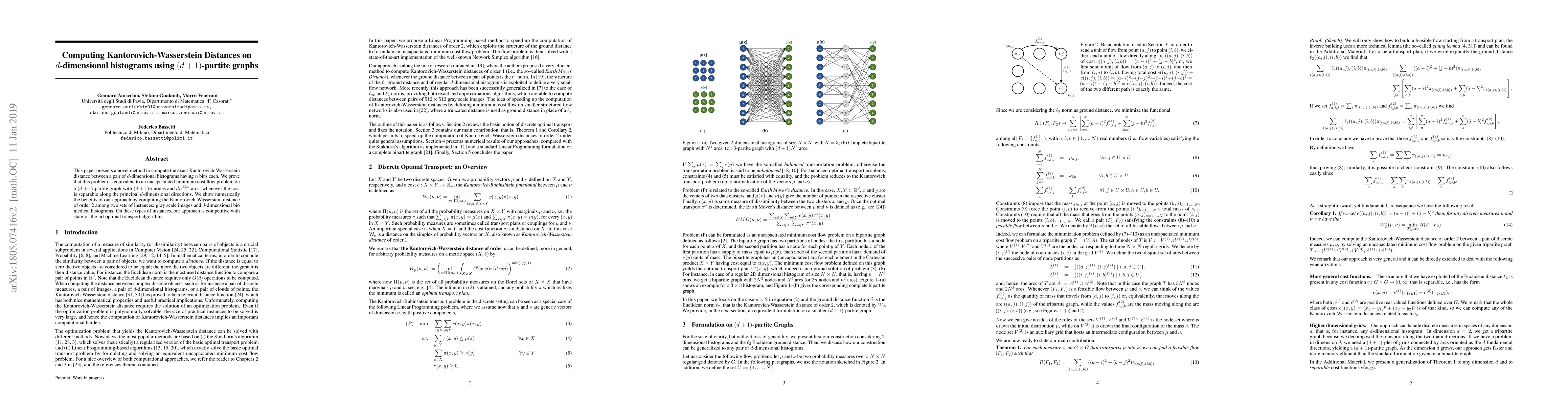 A new method for computing exact Kantorovich-Wasserstein distances between histograms uses a novel $(d+1)$-partite graph approach, offering competitive performance with state-of-the-art algorithms.