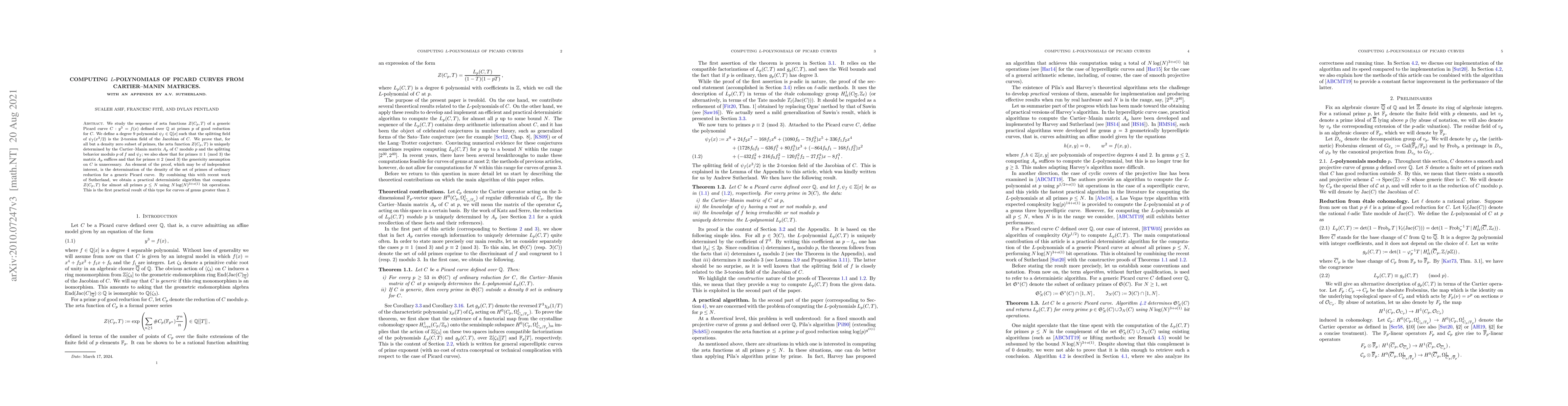 We study the sequence of zeta functions $Z(C_p,T)$ of a generic Picard curve $C:y^3=f(x)$ defined over $\mathbb{Q}$ at primes $p$ of good reduction for $C$. We define a degree 9 polynomial $\psi_f\in \mathbb{Q}[x]$ such that the splitting field of $\psi_f(x^3/2)$ is the $2$-torsion field of the Jacobian of $C$. We prove that, for all but a density zero subset of primes, the zeta function $Z(C_p,T)$ is uniquely determined by the Cartier-Manin matrix $A_p$ of $C$ modulo $p$ and the splitting behavior modulo $p$ of $f$ and $\psi_f$; we also show that for primes $\equiv 1 \pmod{3}$ the matrix $A_p$ suffices and that for primes $\equiv 2 \pmod{3}$ the genericity assumption on $C$ is unnecessary. An element of the proof, which may be of independent interest, is the determination of the density of the set of primes of ordinary reduction for a generic Picard curve. By combining this with recent work of Sutherland, we obtain a practical deterministic algorithm that computes $Z(C_p,T)$ for almost all primes $p \le N$ using $N\log(N)^{3+o(1)}$ bit operations. This is the first practical result of this type for curves of genus greater than 2.
