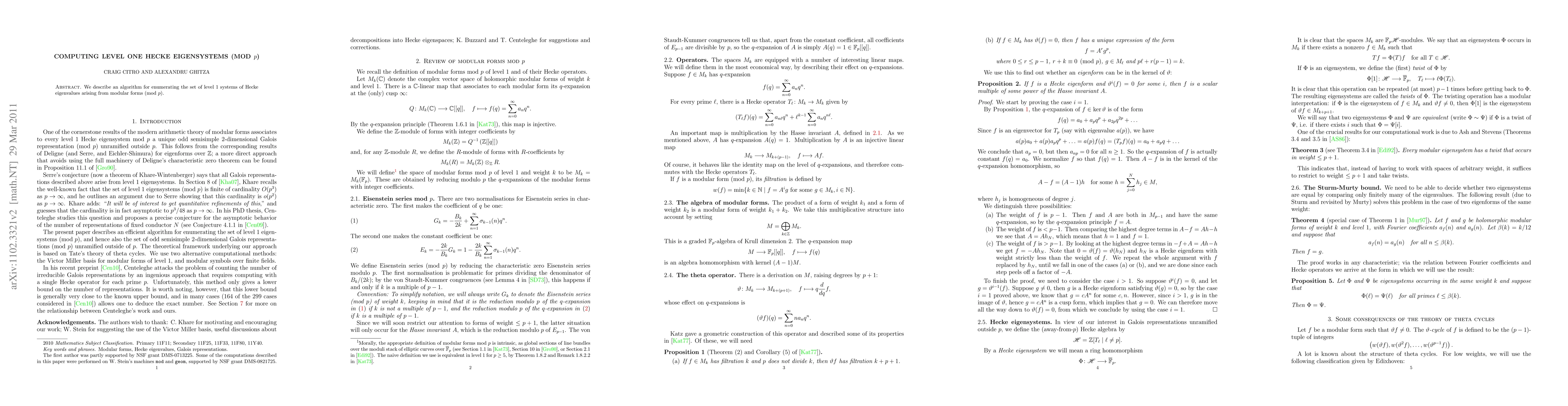 Summary: This paper presents an algorithm for systematically identifying level 1 Hecke eigensystems of modular forms over finite fields (mod p). The methodology facilitates the enumeration of these eigensystems.