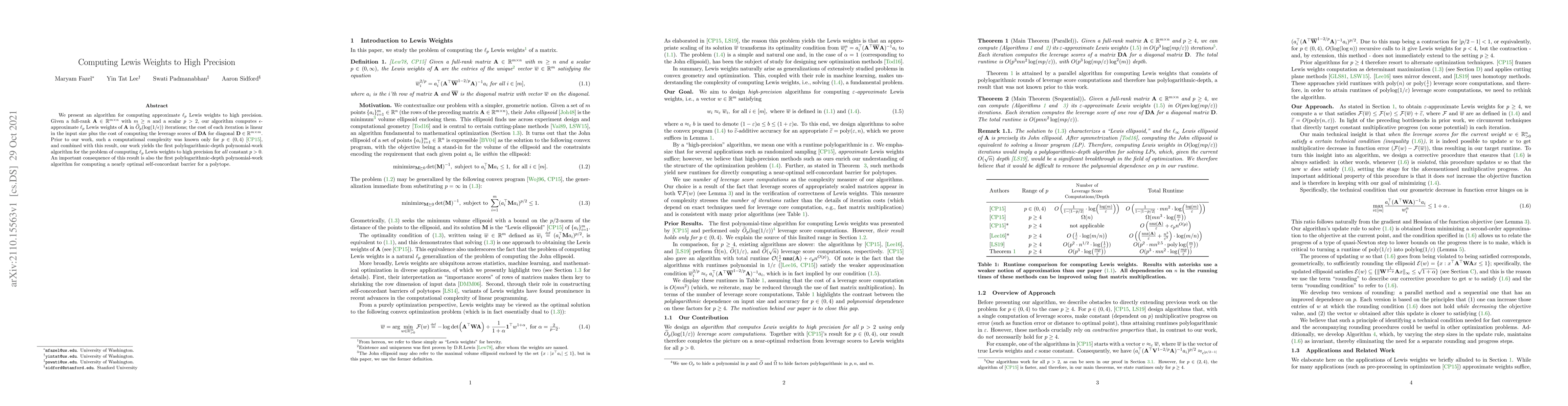 The paper presents an algorithm for computing approximate $\ell_p$ Lewis weights to high precision, utilizing a descent method with rounding steps for full-rank matrices $\mathbf{A} \in \mathbb{R}^{m \times n}$ where $m \geq n$ and for scalar $p > 2$.