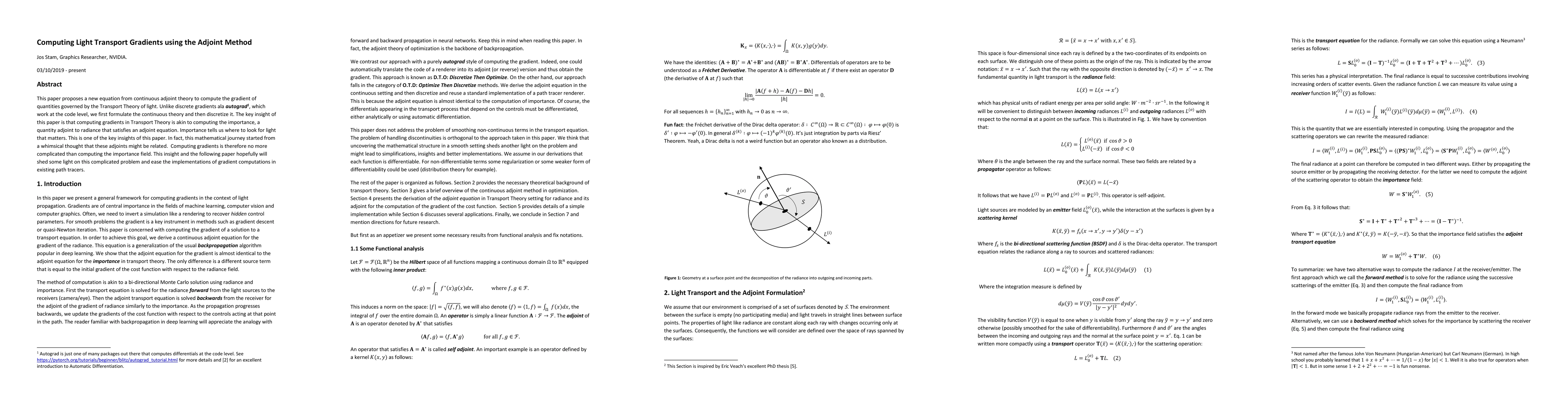 This paper proposes a new equation from continuous adjoint theory to compute the gradient of quantities governed by the Transport Theory of light. Unlike discrete gradients ala autograd, which work at the code level, we first formulate the continuous theory and then discretize it. The key insight of this paper is that computing gradients in Transport Theory is akin to computing the importance, a quantity adjoint to radiance that satisfies an adjoint equation. Importance tells us where to look for light that matters. This is one of the key insights of this paper. In fact, this mathematical journey started from a whimsical thought that these adjoints might be related. Computing gradients is therefore no more complicated than computing the importance field. This insight and the following paper hopefully will shed some light on this complicated problem and ease the implementations of gradient computations in existing path tracers.