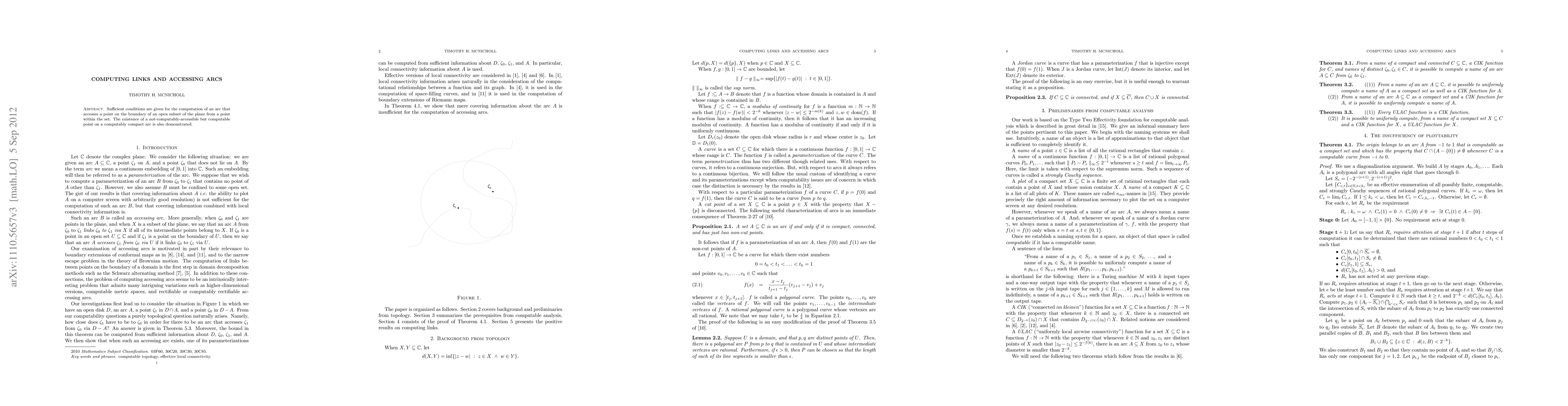 Sufficient conditions are given for the computation of accessing arcs and arcs that links boundary components of multiply connected domains. The existence of a not-computably-accessible but computable point on a computably compact arc is also demonstrated.