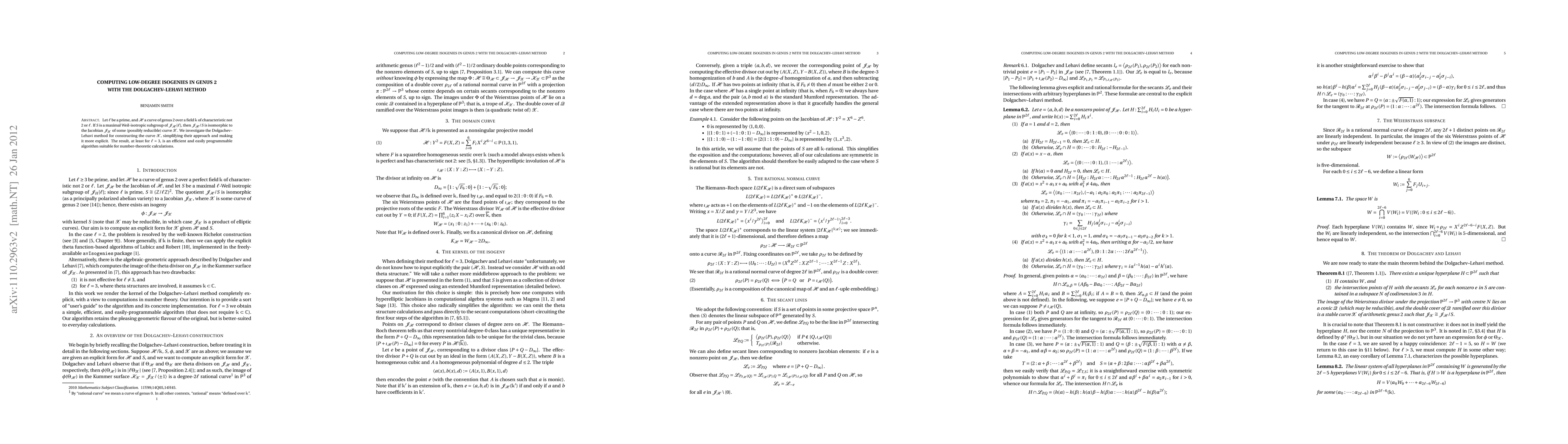 Let ell be a prime, and H a curve of genus 2 over a field k of characteristic not 2 or ell. If S is a maximal Weil-isotropic subgroup of Jac(H)[ell], then Jac(H)/S is isomorphic to the Jacobian of some (possibly reducible) curve X. We investigate the Dolgachev--Lehavi method for constructing the curve X, simplifying their approach and making it more explicit. The result, at least for ell=3, is an efficient and easily programmable algorithm suitable for number-theoretic calculations.