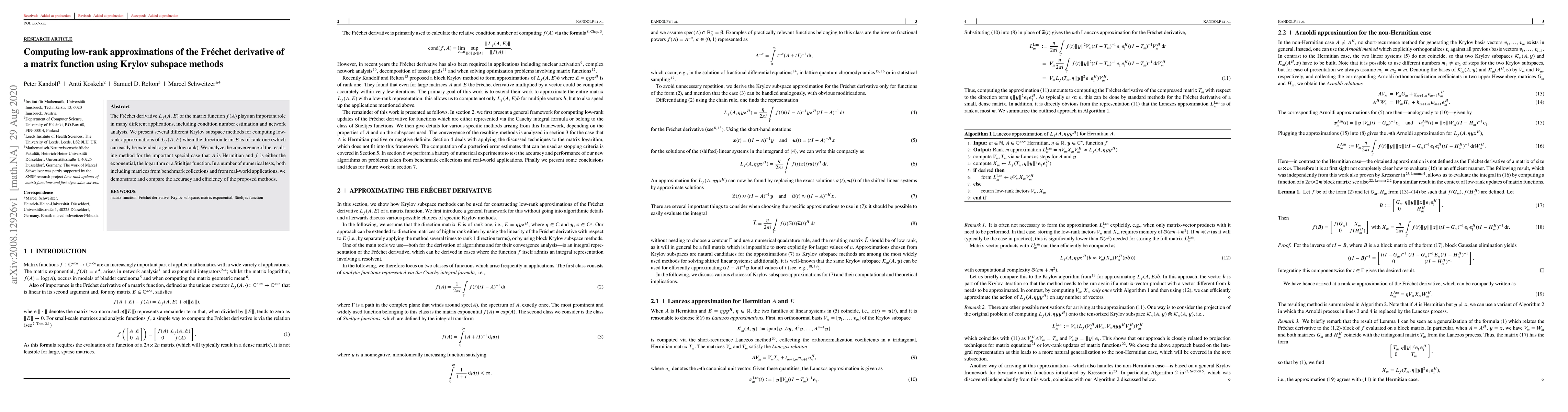 Researchers developed efficient methods to approximate the Fréchet derivative of a matrix function using Krylov subspace methods, showing improved accuracy and efficiency in numerical tests.