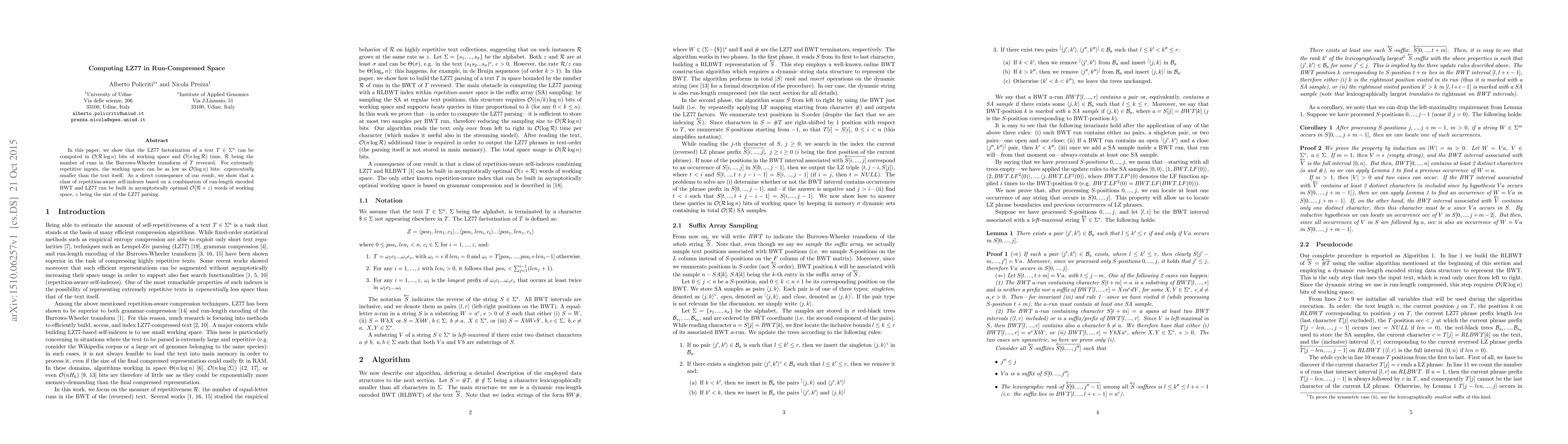 In this paper, we show that the LZ77 factorization of a text T {\in\Sigma^n} can be computed in O(R log n) bits of working space and O(n log R) time, R being the number of runs in the Burrows-Wheeler transform of T reversed. For extremely repetitive inputs, the working space can be as low as O(log n) bits: exponentially smaller than the text itself. As a direct consequence of our result, we show that a class of repetition-aware self-indexes based on a combination of run-length encoded BWT and LZ77 can be built in asymptotically optimal O(R + z) words of working space, z being the size of the LZ77 parsing.